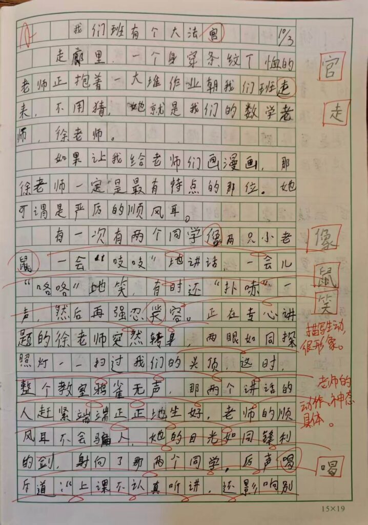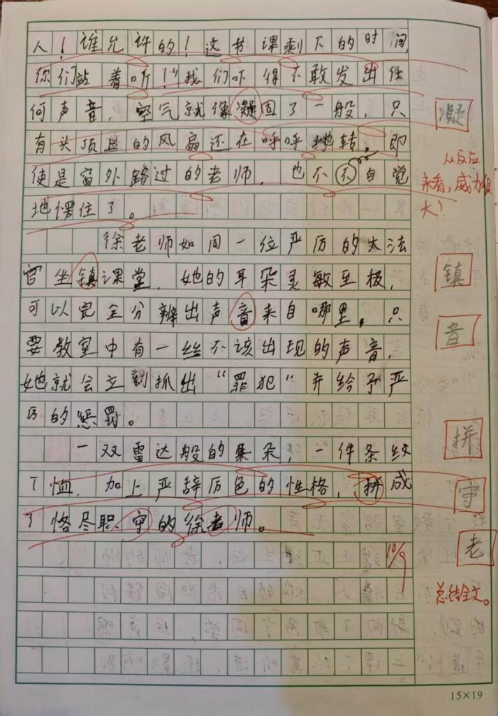 徐老师如同一位严厉的大法官坐镇课堂,她的耳朵灵敏至极,可以完全分辨出声音来自哪里。只要教室中有一丝不该出现的声音,她就会立刻抓出”罪犯“,并给予严厉的惩罚。